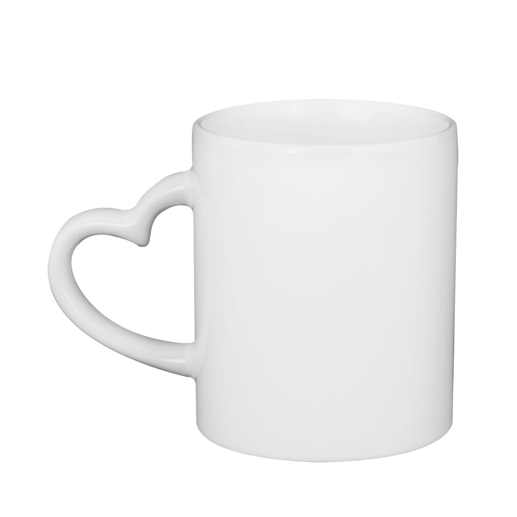 Bílý keramický hrnek o objemu 260 ml s ouškem ve tvaru srdce. Lze potisknout levou i pravou stranu, nebo obě strany najednou. je vhodný jako originální dárek k narozeninám či k Vánocům, pro partnera, rodiče nebo prarodiče, například s fotkou a vzkazem, popř. jako reklamní předmět.